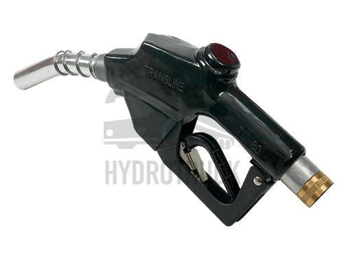 Automaticky uzavíratelná výdejní pistole na naftu, tělo z hliníku s pryžovou ochranou, s otočným vstupem 1” BSP (M–F) a výdejním hrdlem s vnějším ø 24 mm. Maximální průtok 60 l/min.