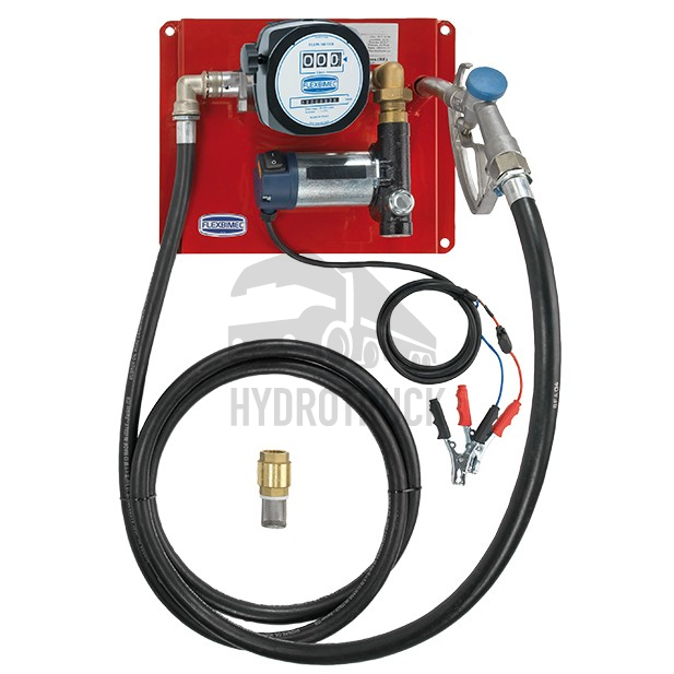K dispozici s motorem na 12 V DC nebo 24 V DC. Skládá se z mechanického průtokoměru (č. výr. 2866), samonasávacího elektrického lamelového čerpadla (č. výr. 6252 nebo 6254) s vestavěným obtokovým ventilem a vstupním sítkem, vypínače ZAP/VYP, 2m kabelu s krokosvorkami pro připojení baterie, sacího ventilu s filtrem (č. výr. 6647), 4m pryžové výtlačné hadice O 3/4” a ruční hliníkové pistole.